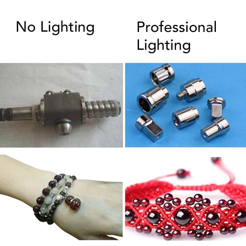 - Tira de luz súper brillante incorporada, que brinda luz media y evita sombras y reflejos en sus fotos